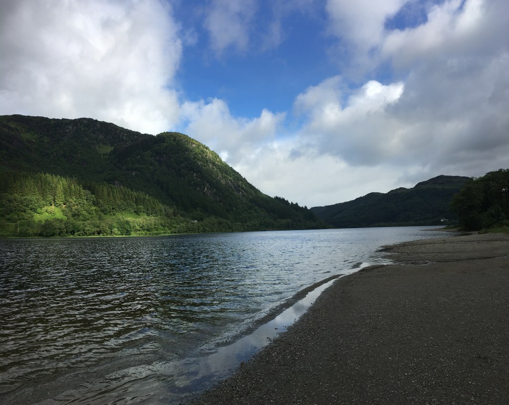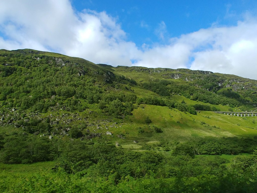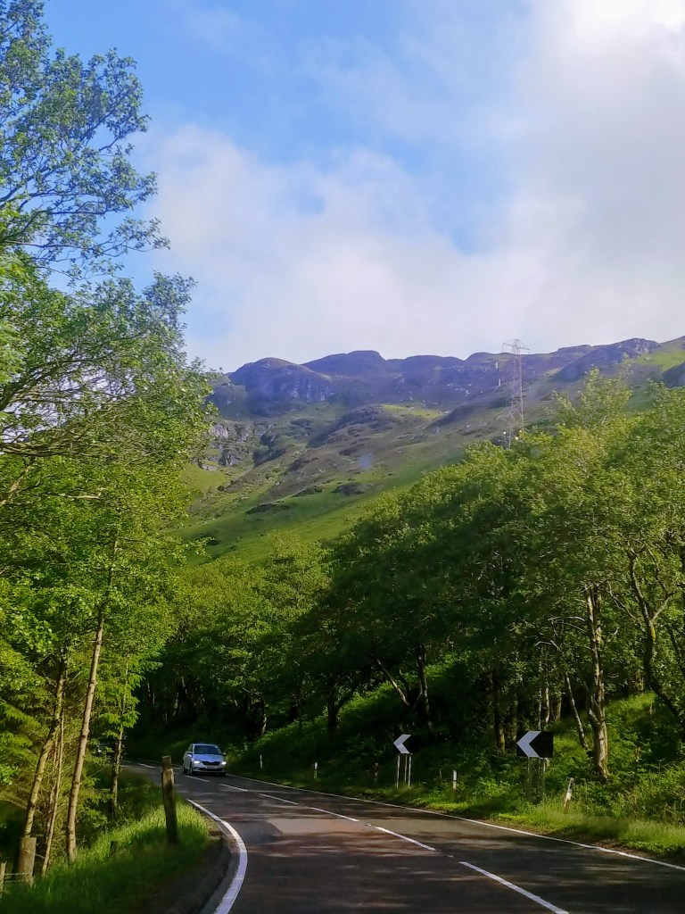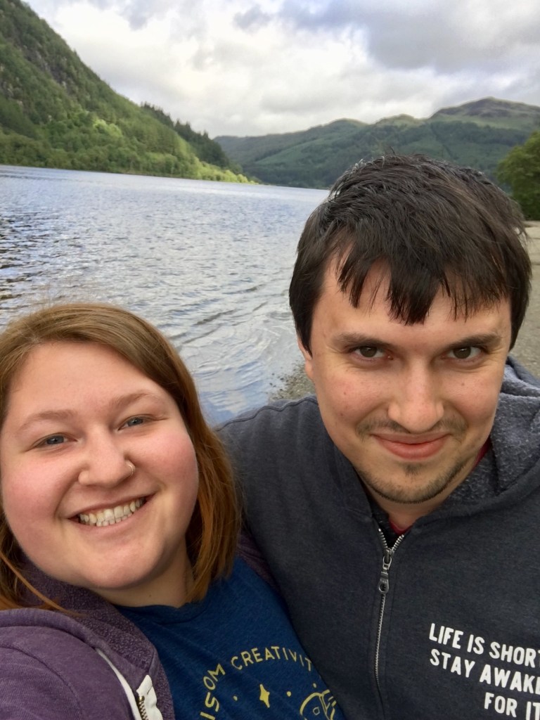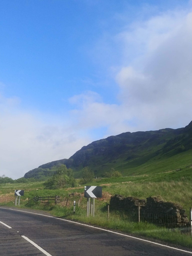 Like most days, we woke up quite early, this time to take a taxi to the airport where we rented our car that we would spend many hours in the next two days. We found a great service stop that ended up being our food and bathroom fallback on our car trips that week. Danielle had driven on the left side of the road before when she studied abroad in Ireland, and though I offered several times to take over driving if she wanted, she felt more comfortable doing it herself. I’m a pretty good navigator, anyways. About thirty minutes past Stirling, the terrain of the island noticeably changed. Grasslands and farms gave way to large hills and valleyed highways. We stopped at a wayside rest by a long lake, the other bank occupied by the largest hill we had yet seen.