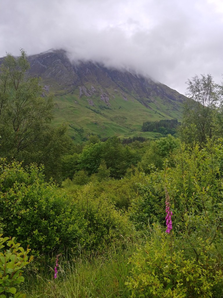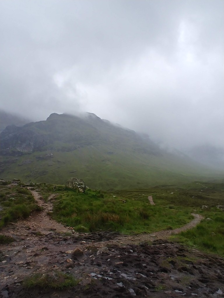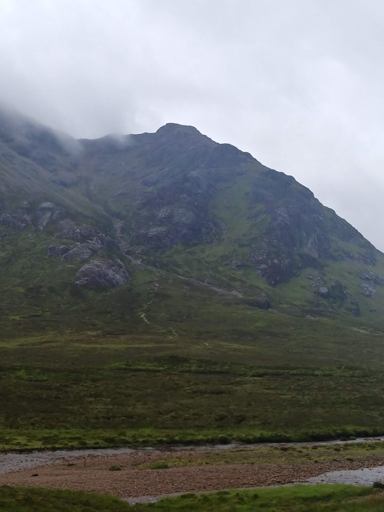 That brief moment of sunlight revealed why it was a good thing that it was overcast and raining all day. If we had done this much hiking in the sunlight this time of year, we would have been miserably hot. It was slightly damp under our clothes, but I would prefer that be from rainwater than sweat any day. Additionally, any minute that there was no rain, tiny bugs called midges, which are pretty much an aggressive mix of gnats and mosquitoes, would come out of the ground and swarm you. I learned later that this was common for the Highlands, and when I learned that after this day trip I was eminently grateful that we did not need to deal with that. Take note of that if you ever visit the Highlands on a sunny day.