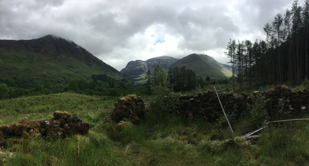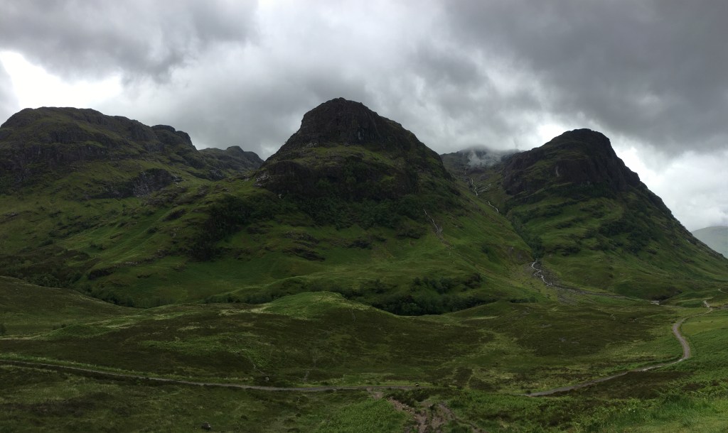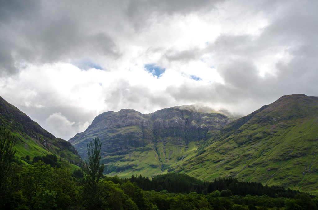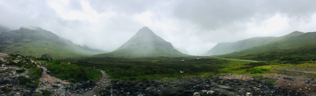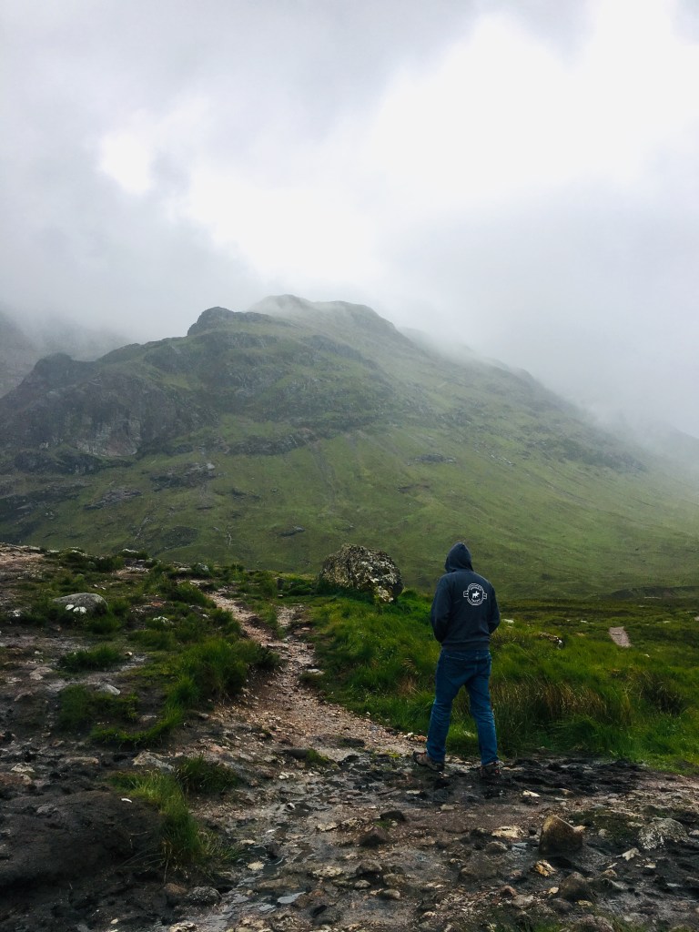 As we turned a bend towards Glencoe, a familiar, welcome feeling passed over me. One that I hope to feel many more times before I die, and I only hope each time would be as satisfying as the last. Before us laid giant knuckles of green rock overcast with clouds, and the sunlit road we were on gradually transitioned into a matching darkened state. I’ve written before that good weather seemed to follow us wherever we went, but besides the fact that I love the rain, this weather would reveal itself to be a good thing, and if anything added to the effect of the day.