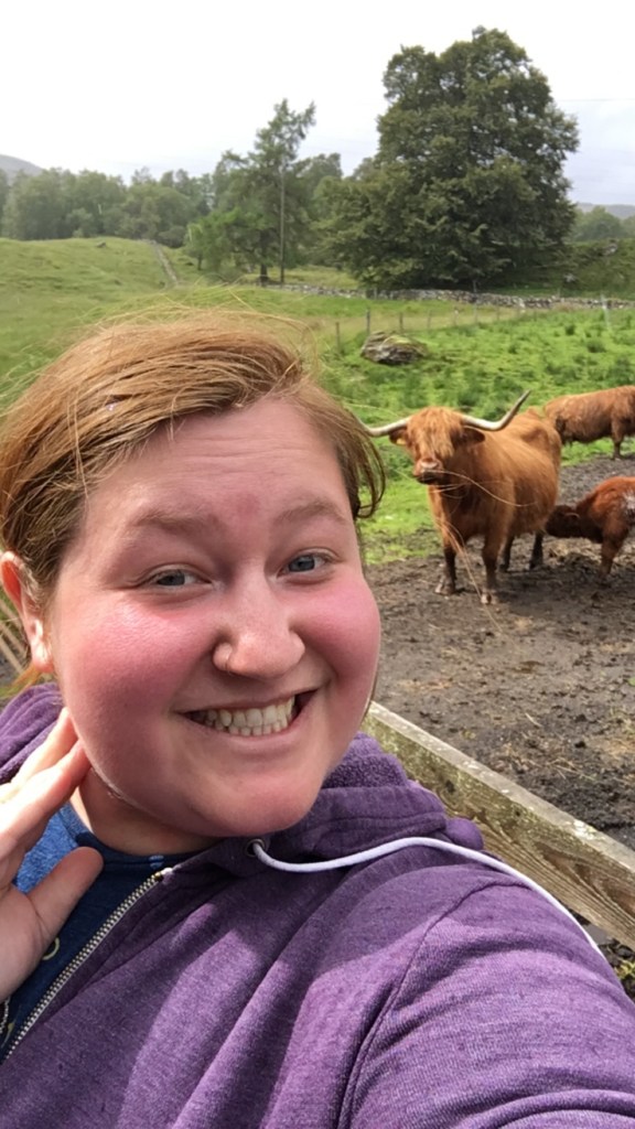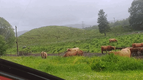 It may have been just out of view on our way into the Highlands, but on our way back we spotted a farm right on the side of the road with perhaps a dozen hairy cows, none of them seeming to have a care in the world. Danielle could not resist, and pulled the car over to run up to the fence to spend some time with one of them. I like to think that if any of the farmers saw her do that, they would not even care, and be happy that they were bringing someone so much joy.