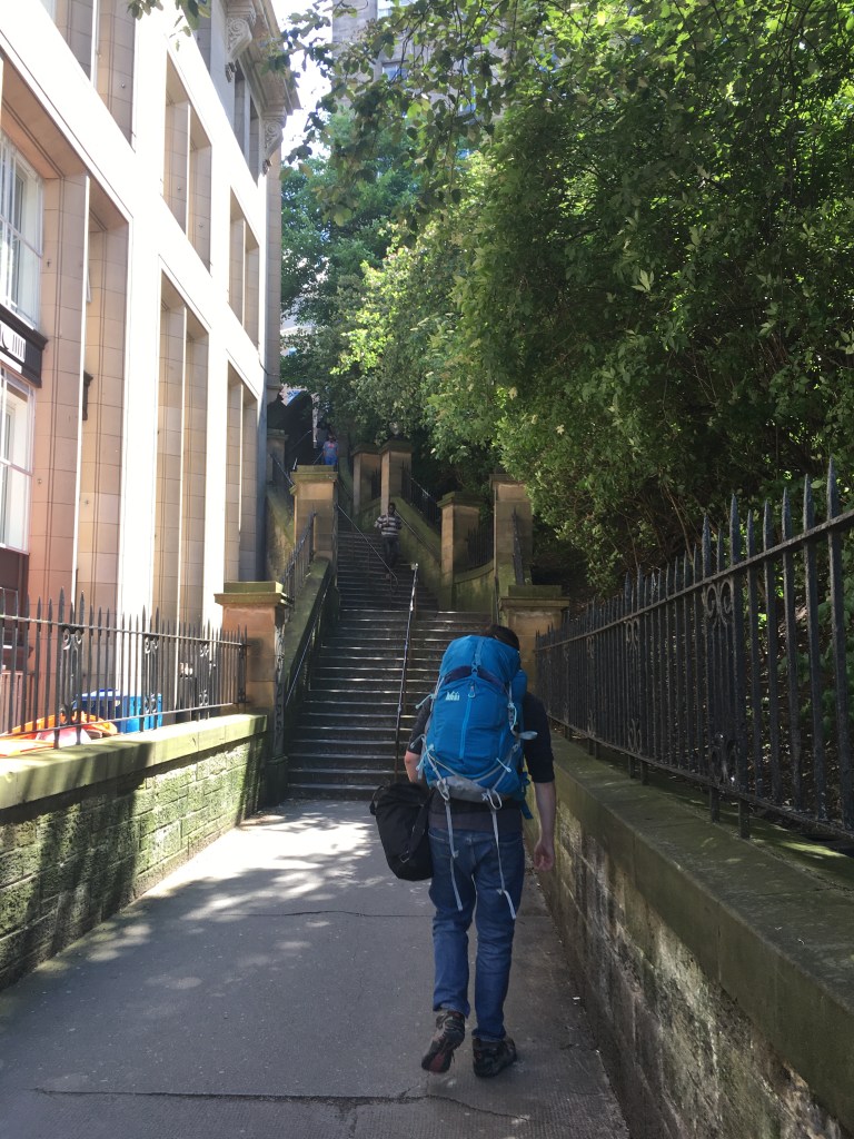 Several hours later, we arrived at the Edinburgh train station, and it became quickly obvious that we were somehow simultaneously deep below the city’s surface and still lit by the sun. After a lunch break at the first McDonald’s I had outside of the US, we started a trek up escalator after escalator until we finally reached the surface, less than a mile from where we would be staying. Now this may have been the street level here, and it may have been less than a mile to travel, but the first thing you should know about Edinburgh before you travel there is the incredible amount of hills and stairways there are, most of them quite steep. We opted against a taxi to save money, and it is no exaggeration that the walk from the train station to the far end of the Royal Mile was the most we exerted ourselves the entire trip.